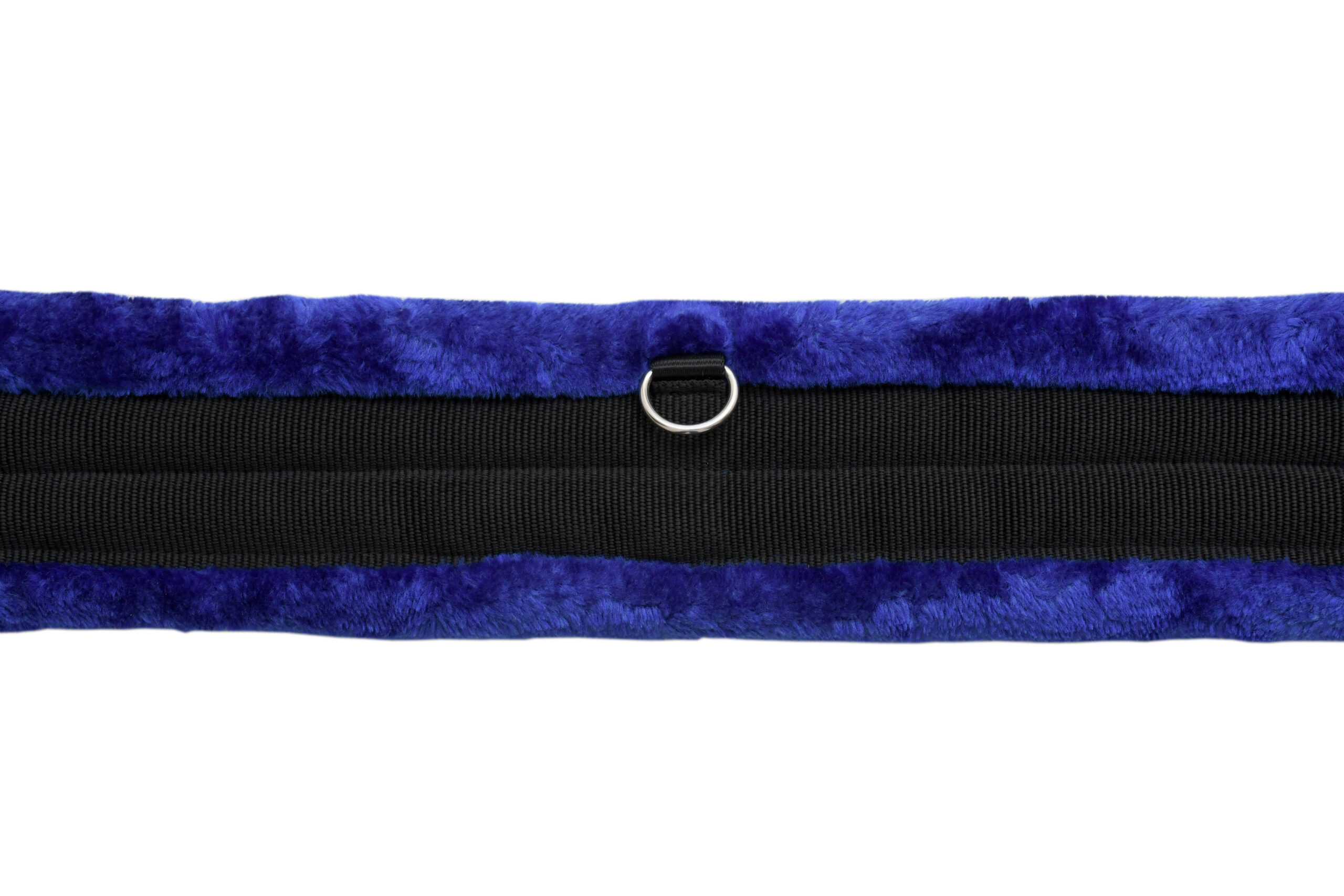 This girth is made for English saddles and built to keep your horse comfortable and your saddle secure the soft fleece lining protects the horse’s skin and helps prevent rubbing the center has strong webbing for grip and support and the metal buckles on both ends make it easy to attach and adjust the D-ring in the middle lets you connect training aids or breastplates .